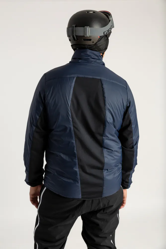 A versatile hybrid jacket. Padded and wind proof with panels of non wind proof stretchy jersey fabric which allows more movement and higher breathability. Also very good in combination with back protection.