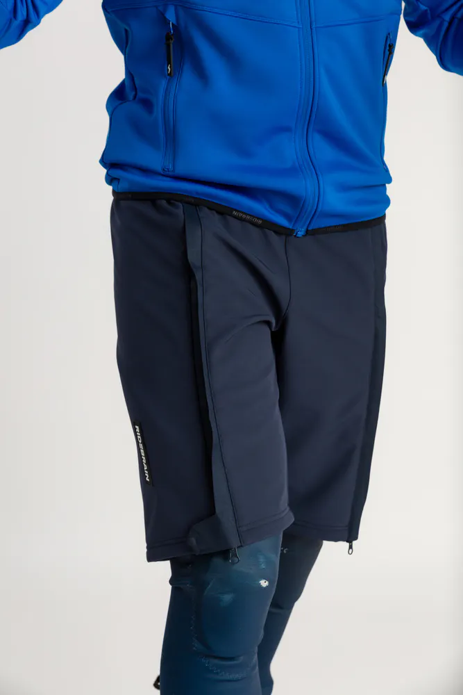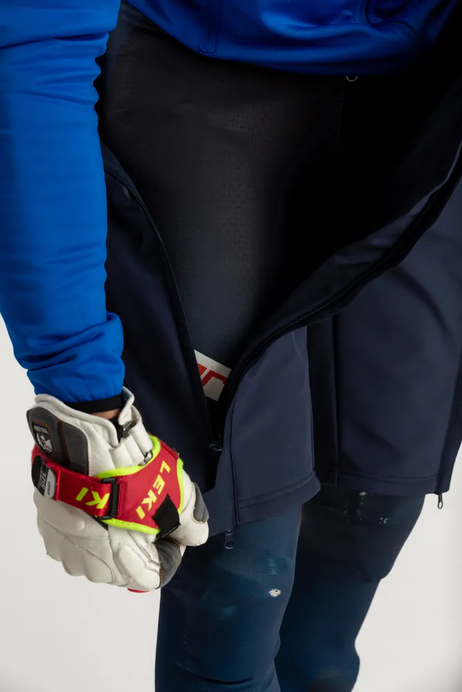 Are you racing? Then you probably need a pair of softshell shorts on too of your race suit. The shorts have full length side zips, so you can easily put them on and off even when skiboots and skiis are on.